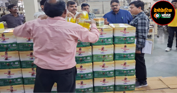 1422 लीटर मिलावटी घी को सीज करते खाद्य सुरक्षा अधिकारी।अतिरिक्त आयुक्त भगवत सिंह ने बताया कि श्री अनु मिल्क प्रोडक्ट्स लिमिटेड के निरीक्षण के दौरान घी के विभिन्न बैचों के नमूने लिए गए और 1422 लीटर घी सीज किया गया। बिलौना घी के एक बैच के असुरक्षित पाए जाने पर उसके विक्रय पर तत्काल रोक लगाते हुए संबंधित विक्रेताओं और निर्माताओं को सख्त निर्देश जारी किए गए हैं।