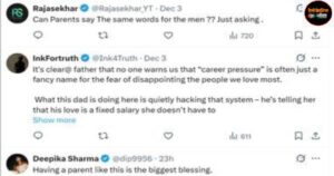 यह वीडियो सोशल मीडिया के तमाम प्लेटफॉर्म पर पोस्ट होने के बाद से हॉट टॉपिक बन गया। इस पोस्ट पर लोग न केवल जमकर प्यार बरसा रहे हैं बल्कि अपने कमेंट्स के जरिए एक अच्छी पेरेंटिंग कैसी होनी चाहिए इसका बखान भी कर रहे हैं। एक यूजर ने लिखा- दुनिया साथ दे या न दे, अगर बाप सर पर हाथ रख दे, तो बच्चा किसी भी जंग को जीत सकता है। दूसरे ने कहा- यह सिर्फ पिता नहीं, एक असली हीरो हैं। काश हर बच्चे को ऐसा सपोर्ट सिस्टम मिले। इसी तरह अन्य यूजर ने भी कहा- इसलिए पापा, पापा होते हैं!